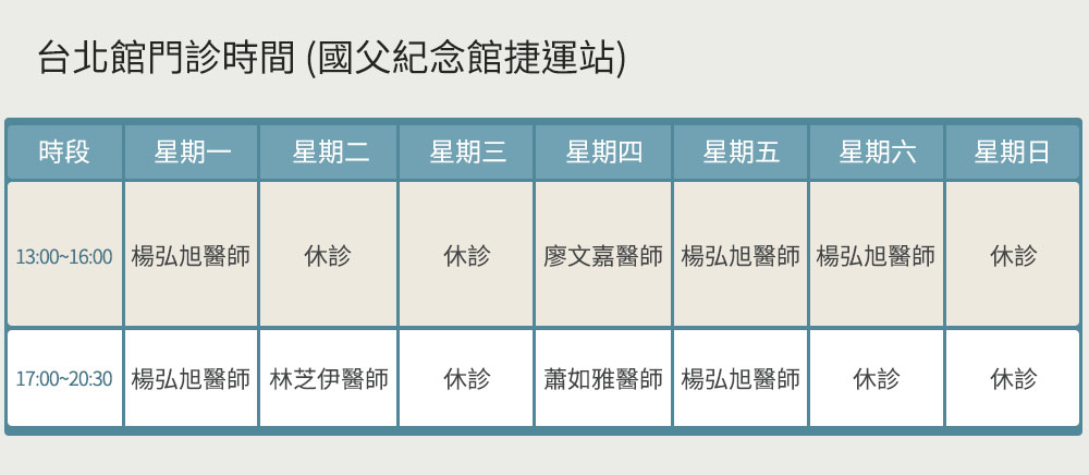 楊弘旭醫師為本院總院長,長年專注於眼睛整形、拉皮拉提手術...等。院長楊弘旭醫師畢業於台大醫院,也同樣是韓國美容手術學院院士,是國內少數專精外科手術之皮膚專科醫師。楊弘旭醫師目前擔任台灣形體美容外科醫學會理事長、台灣皮膚美容外科學會理事及韓國美容外科學院KCCS台灣分會會長,對於推動國內醫美整形發展不遺餘力,學術及臨床上的專業口碑備受肯定,所以時常受邀擔任國內外學術演說專題演講者及技術訓練醫師。他常說:愛美是天性,當客人有需求,醫師是站在協助者的角色,醫療團隊需不斷的精進及吸收國內外新知,提升自己專業技術及豐富經驗,如此才能提供給客人最好最適合的服務。
